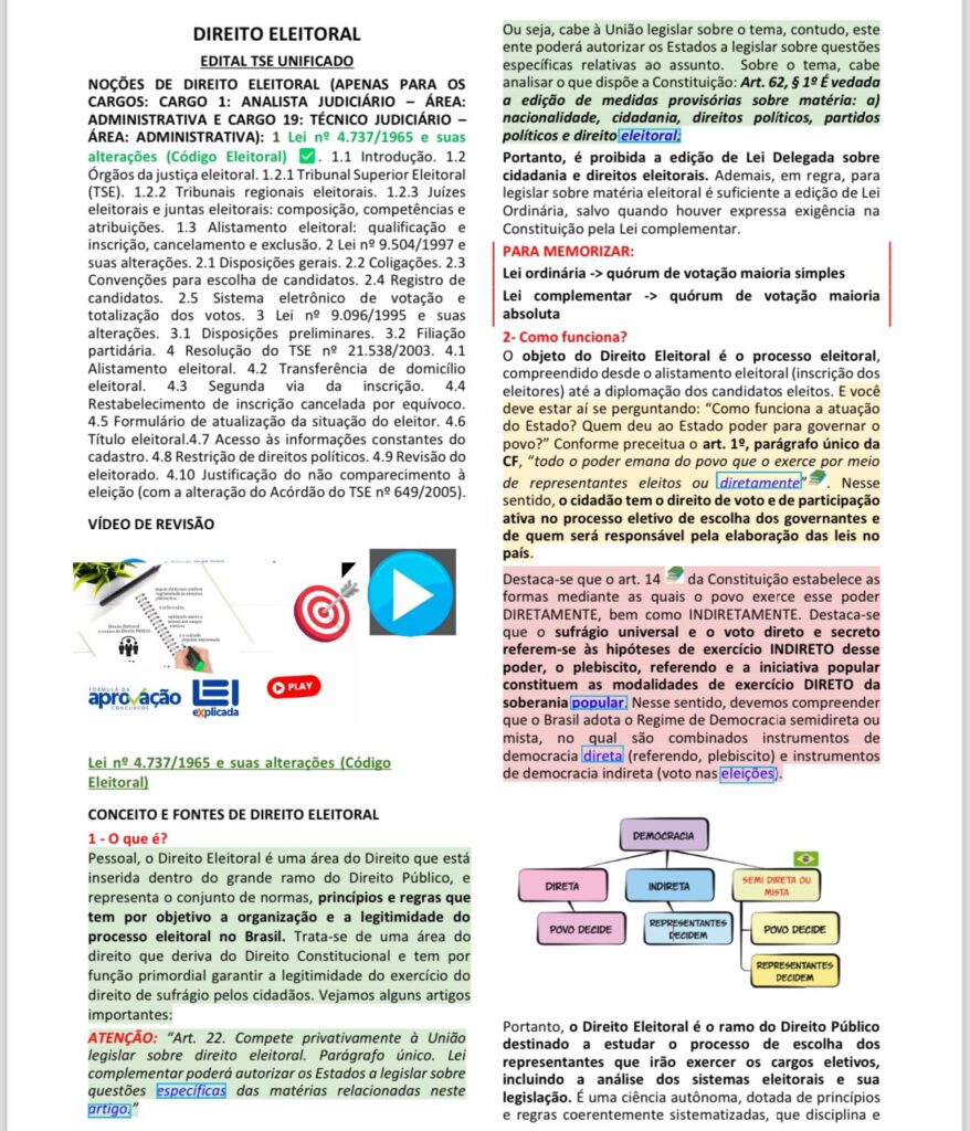 PDF COLORIDO da COLA DA PROVA COM TODA MATÉRIA DO EDITAL "100 PÁGINAS CADA MATÉRIA"